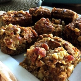 Our Oatmeal Date & Nut Bars are oaty, soft and chewy, with lots of sweet dates and crunchy walnuts. The dates, brown sugar and butter make them nice and sticky, and they taste like oatmeal heaven in delicious dessert bars!