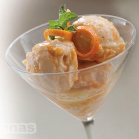 Scoop Orange Yonanas into a glass and pour a shot of your favorite orange liqueur over Yonanas
