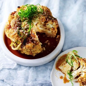 Sprinkle cauliflower with sesame seeds; bake, uncovered, for a further 15 minutes or until cauliflower is tender and browned lightly.