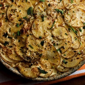 2 lbs. (about 6 medium) Keuka Gold potatoes (unpeeled) sliced 1/8-inch thick