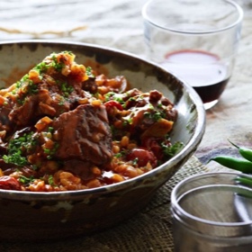 Add barley, undrained tomatoes, celery, rosemary and sugar. Cover dish with lid or foil; bake about 2 hours 30 minutes, or until beef is tender.