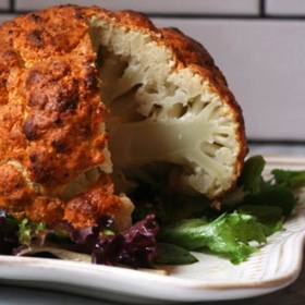 Let the cauliflower cool for 10 minutes before cutting it into wedges and serving alongside a big green salad.