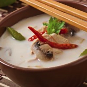 Simmer for 5 minutes, then add the chillies, coconut milk, the mushrooms and the greens.